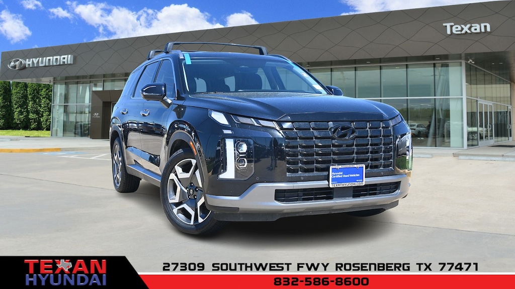 Certified. Moonlight Cloud 2023 Hyundai Palisade SEL Premium Packge FWD 8-Speed Automatic with SHIFTRONIC V6 CARFAX One-Owner. 115-Volt AC Power Outlet, 12.3" Full-Digital Multi-Information Display, 3.510 Axle Ratio, 3rd row seats: split-bench, 3rd Row USB Outlets, 4-Wheel Disc Brakes, 6 Speakers, ABS brakes, Acoustic Rear Side Glass, Air Conditioning, Alloy wheels, AM/FM radio: SiriusXM, Apple CarPlay & Android Auto, Auto High-beam Headlights, Auto Leveling Rear Suspension, Auto-dimming door mirrors, Auto-dimming Rear-View mirror, Automatic temperature control, Blind-Spot View Monitor, Brake assist, Bumpers: body-color, Delay-off headlights, Driver 4-Way Power Lumbar Support, Driver door bin, Driver Talk (In-Car Intercom), Driver vanity mirror, Dual front impact airbags, Dual front side impact airbags, Electronic Stability Control, Emergency communication system: Blue Link Connected Car Service (3-year complimentary subscription), Exterior Parking Camera Rear, Forward Collision Avoidance Assist, Four wheel independent suspension, Front anti-roll bar, Front Bucket Seats, Front Center Armrest, Front dual zone A/C, Front Parking Sensors, Front reading lights, Fully automatic headlights, Garage door transmitter: HomeLink, H-Tex Leatherette Seat Trim, harman/kardon® Audio System, Heated 2nd Row Seats, Heated door mirrors, Heated Front Bucket Seats, Heated front seats, Heated Steering Wheel, Highway Driving Assist II (HDA), Hydro-Phobic Front Side Glass, Illuminated entry, Integrated Memory Driver Seat & Mirrors, Knee airbag, Low tire pressure warning, Navigation System, Occupant sensing airbag, Option Group 02, Outside temperature display, Overhead airbag, Overhead console, Panic alarm, Passenger door bin, Passenger vanity mirror, Power door mirrors, Power driver seat, Power Liftgate, Power passenger seat, Power steering, Power Sunroof, Power windows, Premium Package, Radio data system, Radio: AM/FM/MP3 Audio System, Rear air conditioning, Rear anti-roll bar, Rear audio controls, Rear reading lights, Rear side impact airbag, Rear Side Window Sunshades, Rear window defroster, Rear window wiper, Reclining 3rd row seat, Remote keyless entry, Security system, Speed control, Speed-sensing steering, Split folding rear seat, Spoiler, Steering wheel mounted audio controls, Surround View Monitor, Tachometer, Telescoping steering wheel, Tilt steering wheel, Traction control, Trip computer, Turn signal indicator mirrors, Variably intermittent wipers, Ventilated Front & 2nd-Row Seats, Wheels: 18" x 7.5J Machine-Faced Alloy, Wheels: 20" x 7.5J Alloy.
