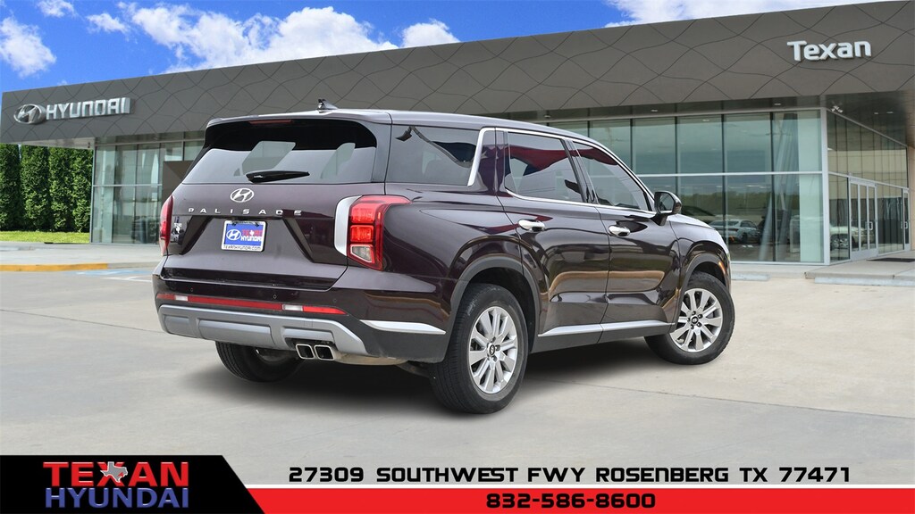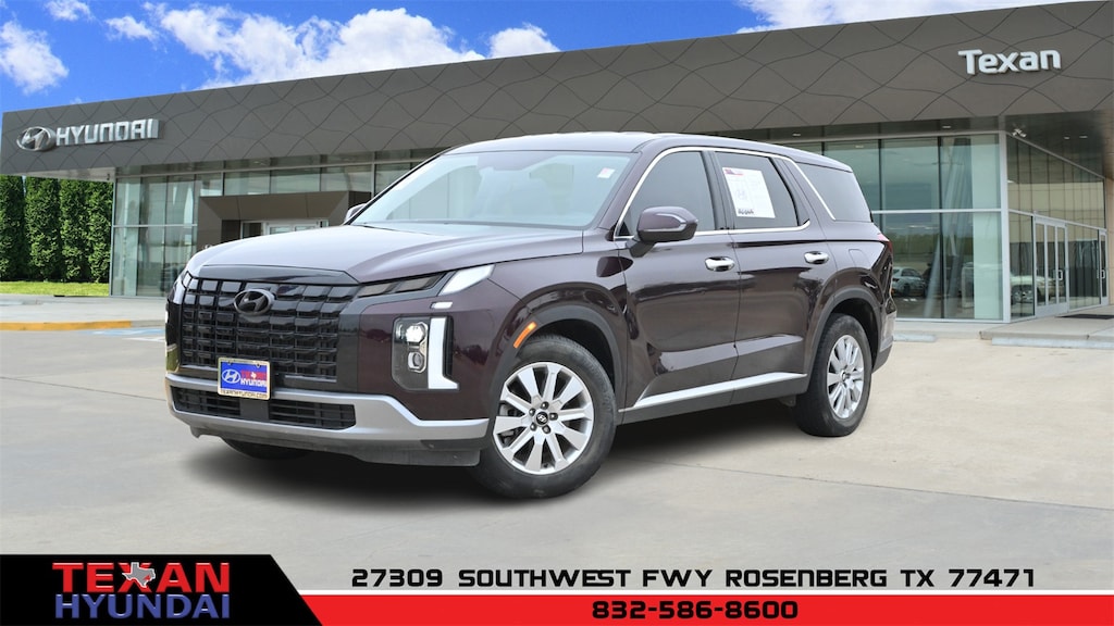 Certified. Red 2023 Hyundai Palisade SE FWD 8-Speed Automatic with SHIFTRONIC V6 CARFAX One-Owner. 3.510 Axle Ratio, 3rd row seats: split-bench, 4-Wheel Disc Brakes, 6 Speakers, ABS brakes, Air Conditioning, Alloy wheels, AM/FM radio: SiriusXM, Apple CarPlay & Android Auto, Auto High-beam Headlights, Auto-dimming door mirrors, Auto-dimming Rear-View mirror, Brake assist, Bumpers: body-color, Cargo Cover/Screen, Cargo Net, Cargo Tray, Carpeted Floor Mats, Cloth Seat Trim, Delay-off headlights, Driver door bin, Driver vanity mirror, Dual front impact airbags, Dual front side impact airbags, Electronic Stability Control, Emergency communication system: Blue Link Connected Car Service (3-year complimentary subscription), Exterior Parking Camera Rear, Four wheel independent suspension, Front anti-roll bar, Front Bucket Seats, Front Center Armrest, Front reading lights, Fully automatic headlights, Heated door mirrors, Illuminated entry, Knee airbag, Low tire pressure warning, Navigation System, Occupant sensing airbag, Option Group 01, Outside temperature display, Overhead airbag, Overhead console, Panic alarm, Passenger door bin, Passenger vanity mirror, Power door mirrors, Power steering, Power windows, Radio data system, Radio: AM/FM/MP3 Audio System, Rear air conditioning, Rear anti-roll bar, Rear audio controls, Rear reading lights, Rear seat center armrest, Rear side impact airbag, Rear window defroster, Rear window wiper, Reclining 3rd row seat, Remote keyless entry, Security system, Speed control, Speed-sensing steering, Split folding rear seat, Spoiler, Steering wheel mounted audio controls, Tachometer, Telescoping steering wheel, Tilt steering wheel, Traction control, Trip computer, Turn signal indicator mirrors, Variably intermittent wipers, Wheel Locks, Wheels: 18" x 7.5J Painted Finish Alloy.