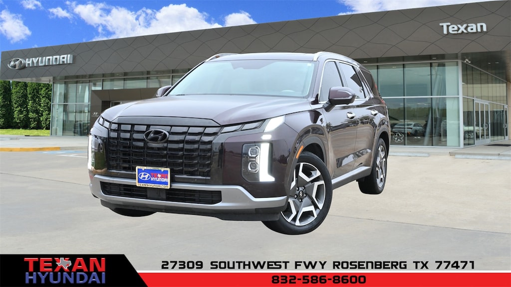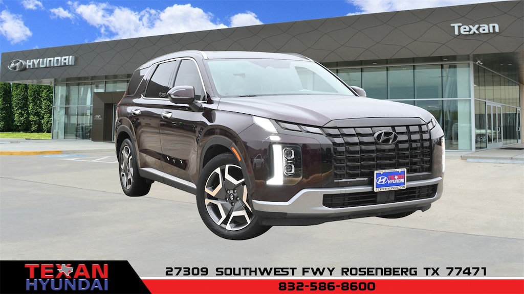 Certified. Red 2024 Hyundai Palisade Limited FWD 8-Speed Automatic with SHIFTRONIC V6 CARFAX One-Owner. 12 Speakers, 3.510 Axle Ratio, 3rd row seats: split-bench, 4-Wheel Disc Brakes, ABS brakes, Air Conditioning, All-Season Fitted Liners, Alloy wheels, AM/FM radio: SiriusXM, Apple CarPlay & Android Auto, Auto High-beam Headlights, Auto-dimming door mirrors, Auto-dimming Rear-View mirror, Auto-leveling suspension, Automatic temperature control, Brake assist, Bumper Applique, Bumpers: body-color, Cargo Cover/Screen, Carpeted Floor Mats, Compass, Delay-off headlights, Driver door bin, Driver vanity mirror, Dual front impact airbags, Dual front side impact airbags, Electronic Stability Control, Emergency communication system, Exterior Parking Camera Rear, First Aid Kit, Four wheel independent suspension, Front anti-roll bar, Front Bucket Seats, Front Center Armrest, Front dual zone A/C, Front reading lights, Fully automatic headlights, Garage door transmitter: HomeLink, harman/kardon® Speakers, Heads-Up Display, Heated & Ventilated Front Bucket Seats, Heated door mirrors, Heated front seats, Heated rear seats, Heated steering wheel, Illuminated entry, Knee airbag, Leather Seat Trim, Low tire pressure warning, Memory seat, Navigation System, Occupant sensing airbag, Option Group 01, Outside temperature display, Overhead airbag, Overhead console, Panic alarm, Passenger door bin, Passenger vanity mirror, Power door mirrors, Power driver seat, Power Liftgate, Power moonroof, Power passenger seat, Power steering, Power windows, Radio data system, Radio: AM/FM/MP3 Premium Audio System, Rain sensing wipers, Rear air conditioning, Rear anti-roll bar, Rear audio controls, Rear reading lights, Rear side impact airbag, Rear window defroster, Rear window wiper, Reclining 3rd row seat, Remote keyless entry, Security system, Speed control, Speed-sensing steering, Split folding rear seat, Spoiler, Steering wheel mounted audio controls, Tachometer, Telescoping steering wheel, Tilt steering wheel, Traction control, Trip computer, Turn signal indicator mirrors, Variably intermittent wipers, Ventilated front seats, Ventilated rear seats, Wheel Locks, Wheels: 20" x 7.5J Alloy.