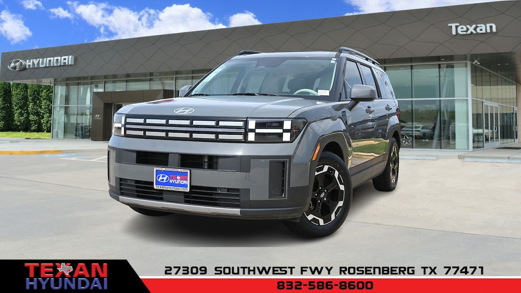 Certified. Gray 2024 Hyundai Santa Fe SEL FWD Shiftronic 2.5L I4 CARFAX One-Owner. Gray w/H-Tex Leatherette Seat Trim, 18" x 7.5J Alloy Wheels, 3rd row seats: bench, 4-Wheel Disc Brakes, 6 Speakers, ABS brakes, Air Conditioning, Alloy wheels, AM/FM radio: SiriusXM, Apple CarPlay & Android Auto, Auto High-beam Headlights, Automatic temperature control, Axle Ratio: 3.316, Brake assist, Bumpers: body-color, Cargo Net, Carpeted Floor Mats, Delay-off headlights, Driver door bin, Driver vanity mirror, Dual front impact airbags, Dual front side impact airbags, Electronic Stability Control, Emergency communication system, Exterior Parking Camera Rear, First Aid Kit, Four wheel independent suspension, Front anti-roll bar, Front Bucket Seats, Front Center Armrest, Front dual zone A/C, Front reading lights, Fully automatic headlights, H-Tex Leatherette Seat Trim, Heated door mirrors, Heated Front Bucket Seats, Heated front seats, Illuminated entry, Knee airbag, Leather steering wheel, Low tire pressure warning, Mudguards, Occupant sensing airbag, Option Group 01, Outside temperature display, Overhead airbag, Overhead console, Panic alarm, Passenger door bin, Passenger vanity mirror, Power door mirrors, Power driver seat, Power Liftgate, Power steering, Power windows, Radio: AM/FM/HD Display Audio, Rear anti-roll bar, Rear seat center armrest, Rear side impact airbag, Rear window defroster, Rear window wiper, Remote keyless entry, Security system, Speed control, Speed-sensing steering, Split folding rear seat, Spoiler, Steering wheel mounted audio controls, Tachometer, Telescoping steering wheel, Tilt steering wheel, Traction control, Trip computer, Turn signal indicator mirrors, Variably intermittent wipers, Wheel Locks.