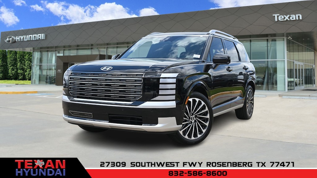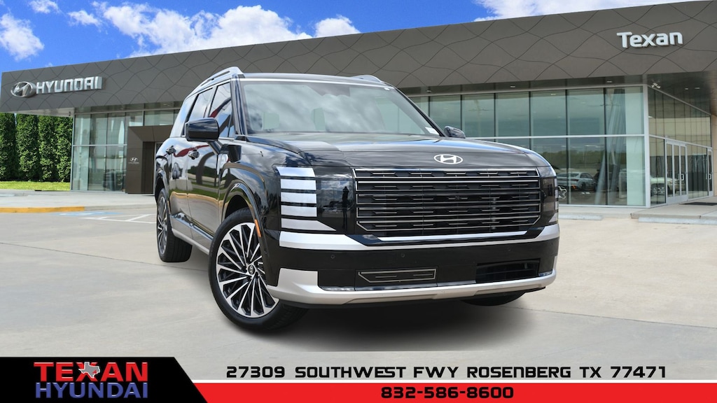 Certified. Black 2026 Hyundai Palisade Calligraphy FWD 8-Speed Automatic V6 CARFAX One-Owner. 14 Speakers, 3rd row seats: split-bench, 4-Wheel Disc Brakes, ABS brakes, Air Conditioning, Alloy wheels, AM/FM radio: SiriusXM, Apple CarPlay & Android Auto, Audio memory, Auto High-beam Headlights, Auto-dimming door mirrors, Auto-dimming Rear-View mirror, Auto-leveling suspension, Automatic temperature control, Brake assist, Bumpers: body-color, Cargo Cover, Cargo Net, Cargo Tray, Carpeted Floor Mats, Compass, Delay-off headlights, Driver door bin, Driver vanity mirror, Dual front impact airbags, Dual front side impact airbags, Electronic Stability Control, Emergency communication system: None, Exterior Parking Camera Rear, First Aid Kit, Four wheel independent suspension, Front anti-roll bar, Front Bucket Seats, Front Center Armrest, Front dual zone A/C, Front reading lights, Fully automatic headlights, Garage door transmitter: HomeLink, Genuine wood console insert, Genuine wood dashboard insert, Heads-Up Display, Heated and Ventilated Front Bucket Seats, Heated door mirrors, Heated front seats, Heated rear seats, Heated steering wheel, HVAC memory, Illuminated entry, Knee airbag, Leather steering wheel, Low tire pressure warning, Memory seat, Navigation System, Occupant sensing airbag, Option Group 01, Outside temperature display, Overhead airbag, Overhead console, Panic alarm, Passenger door bin, Passenger vanity mirror, Power door mirrors, Power driver seat, Power Liftgate, Power moonroof, Power passenger seat, Power steering, Power windows, Premium Nappa Leather Seat Trim, Radio data system, Radio: Infotainment Navigation System, Rain sensing wipers, Rear air conditioning, Rear anti-roll bar, Rear audio controls, Rear reading lights, Rear side impact airbag, Rear window defroster, Rear window wiper, Reclining 3rd row seat, Remote keyless entry, Security system, Speed control, Split folding rear seat, Spoiler, Steering wheel mounted audio controls, Tachometer, Telescoping steering wheel, Tilt steering wheel, Traction control, Trip computer, Turn signal indicator mirrors, Variably intermittent wipers, Ventilated front seats, Ventilated rear seats, Wheels: 21" x 8.5J Alloy.