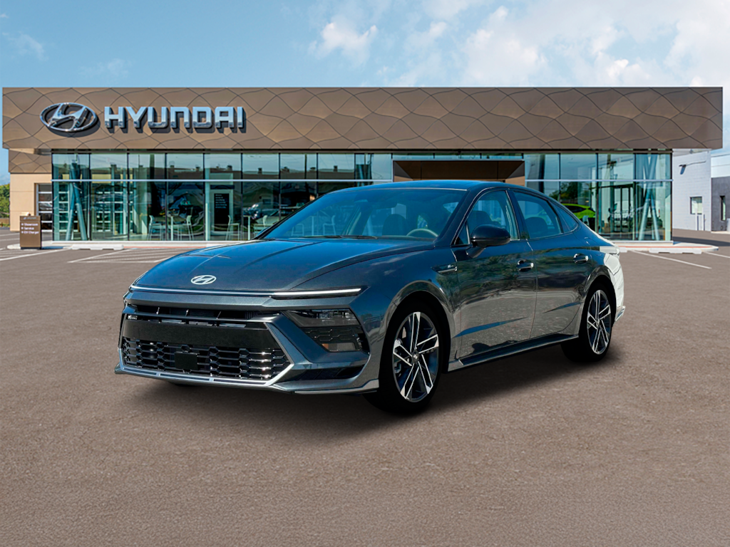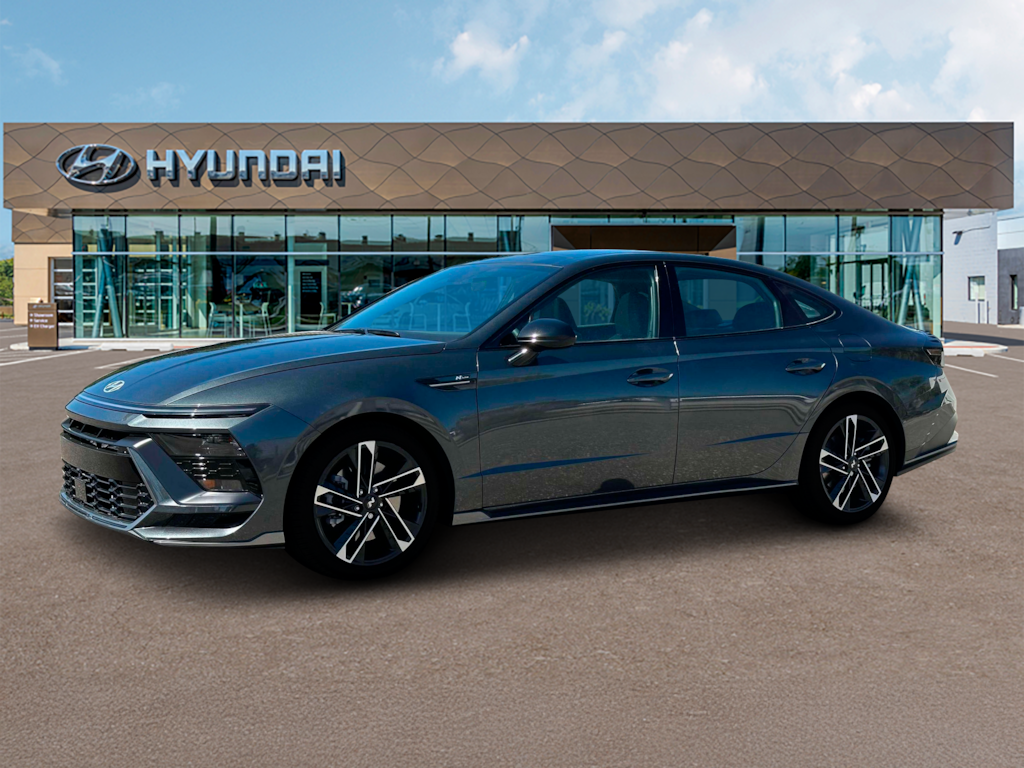 Recent Arrival! Portofino Gray 2025 Hyundai Sonata FWD N Line 8-Speed I4 Dark Grey Premium Synthetic.