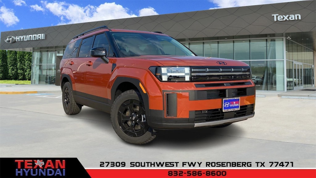 Terracotta Orange 2026 Hyundai Santa Fe AWD XRT 8-Speed Automatic with SHIFTRONIC 2.5L I4 AWD, Black Premium Synthetic.