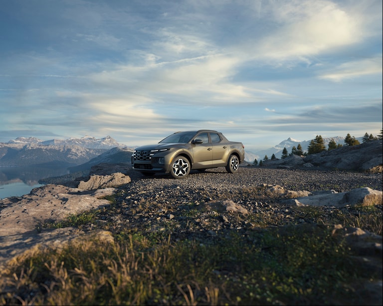 - Hyundai Santa Cruz - Offering a unique experience, the stylish and sophisticated Santa Cruz provides you with all the convenience of a pickup truck without the additional bulk. With its powerful engine options, you can command the roads ahead and tow up to 5,000 pounds.