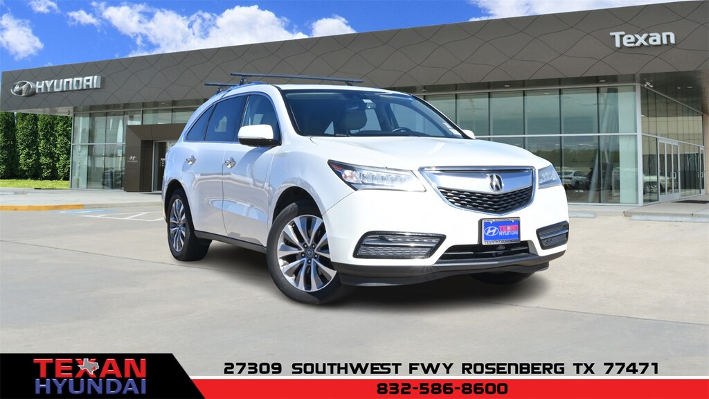 White 2015 Acura MDX 3.5L Technology Package SH-AWD AWD 6-Speed Automatic 3.5L V6 SOHC i-VTEC 24V Parchment w/Leather-Trimmed Interior, 10 Speakers, 3rd row seats: split-bench, 4-Wheel Disc Brakes, 4.25 Axle Ratio, ABS brakes, Adaptive suspension, Air Conditioning, Alloy wheels, AM/FM radio: SiriusXM, Anti-whiplash front head restraints, Auto tilt-away steering wheel, Auto-dimming Rear-View mirror, Automatic temperature control, Brake assist, Bumpers: body-color, CD player, Delay-off headlights, Driver door bin, Driver vanity mirror, Dual front impact airbags, Dual front side impact airbags, Electronic Stability Control, Exterior Parking Camera Rear, Four wheel independent suspension, Front anti-roll bar, Front Bucket Seats, Front Center Armrest w/Storage, Front dual zone A/C, Front reading lights, Garage door transmitter: HomeLink, Heated door mirrors, Heated front seats, Heated Front Sport Seats, Illuminated entry, Knee airbag, Leather Shift Knob, Leather-Trimmed Interior, Low tire pressure warning, Memory seat, Navigation System, Occupant sensing airbag, Outside temperature display, Overhead airbag, Overhead console, Panic alarm, Passenger door bin, Passenger vanity mirror, Power door mirrors, Power driver seat, Power Liftgate, Power moonroof, Power passenger seat, Power steering, Power windows, Premium audio system: Acura/ELS Studio, Radio data system, Radio: Acura/ELS Studio Premium Audio System, Rain sensing wipers, Rear air conditioning, Rear anti-roll bar, Rear reading lights, Rear seat center armrest, Rear window defroster, Rear window wiper, Remote keyless entry, Security system, Speed control, Speed-sensing steering, Speed-Sensitive Wipers, Split folding rear seat, Spoiler, Steering wheel memory, Steering wheel mounted audio controls, Tachometer, Telescoping steering wheel, Tilt steering wheel, Traction control, Trip computer, Turn signal indicator mirrors, Variably intermittent wipers, Wheels: 19" x 8" Machine Finished Aluminum-Alloy.