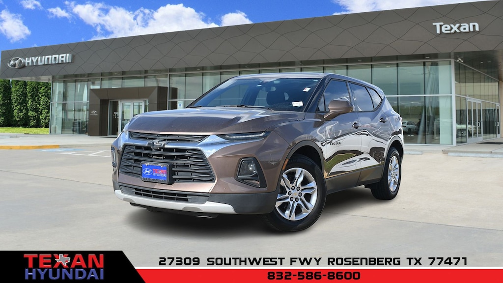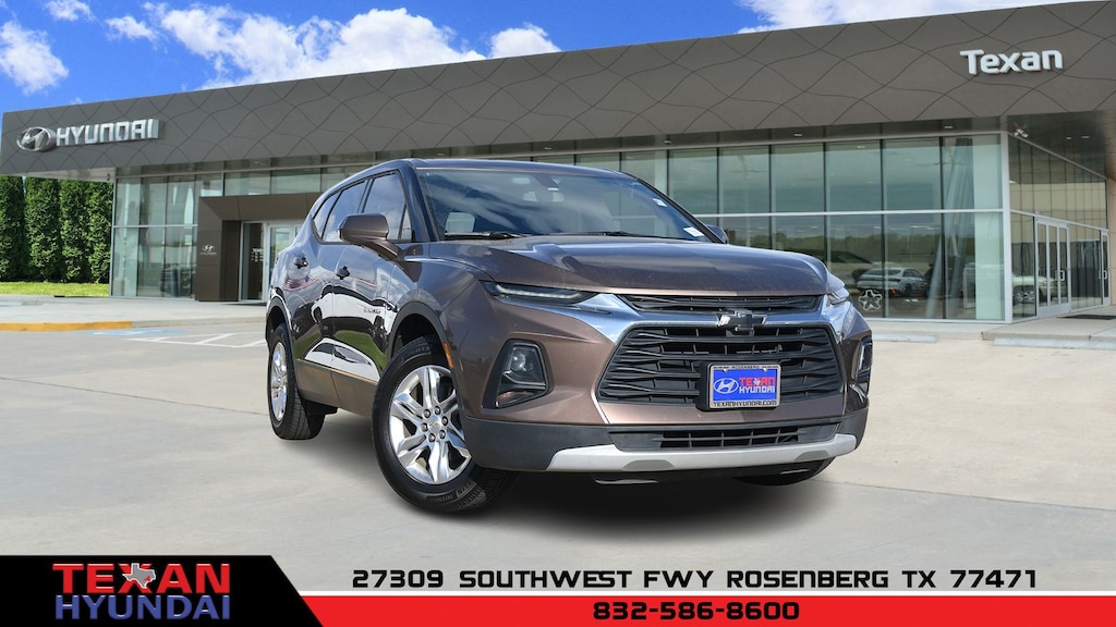 Beige 2019 Chevrolet Blazer 1LT FWD 9-Speed Automatic 2.5L 4-Cylinder Clean CARFAX. 3.80 Final Drive Ratio, 4-Wheel Disc Brakes, 6 Speakers, 6-Speaker Audio System Feature, ABS brakes, Air Conditioning, Alloy wheels, AM/FM radio: SiriusXM, Apple CarPlay/Android Auto, Automatic temperature control, Brake assist, Bumpers: body-color, Cargo Package (LPO), Child-Seat-Sensing Airbag, Compass, Delay-off headlights, Driver door bin, Driver vanity mirror, Dual front impact airbags, Dual front side impact airbags, Electronic Stability Control, Emergency communication system: OnStar and Chevrolet connected services capable, Four wheel independent suspension, Front anti-roll bar, Front Bucket Seats, Front Center Armrest, Front dual zone A/C, Front reading lights, Fully automatic headlights, Heated door mirrors, High-Intensity Discharge Headlights, Illuminated entry, Interior Protection Package (LPO), Knee airbag, Leather Shift Knob, Low tire pressure warning, Occupant sensing airbag, Outside temperature display, Overhead airbag, Overhead console, Panic alarm, Passenger door bin, Passenger vanity mirror, Power door mirrors, Power driver seat, Power steering, Power windows, Preferred Equipment Group 1LT, Premium All-Weather Cargo Mat (LPO), Premium All-Weather Floor Mats, Premium Cloth Seat Trim, Radio data system, Radio: Chevrolet Infotainment 3 System, Rear anti-roll bar, Rear reading lights, Rear seat center armrest, Rear window defroster, Rear window wiper, Remote keyless entry, Retractable Cargo Shade, Ride & Handling Suspension, Security system, Speed control, Speed-sensing steering, Split folding rear seat, Spoiler, Steering wheel mounted audio controls, Tachometer, Telescoping steering wheel, Tilt steering wheel, Traction control, Trip computer, Variably intermittent wipers, Vertical Cargo Net (LPO), Voltmeter, Wheels: 18" Bright Silver Aluminum.