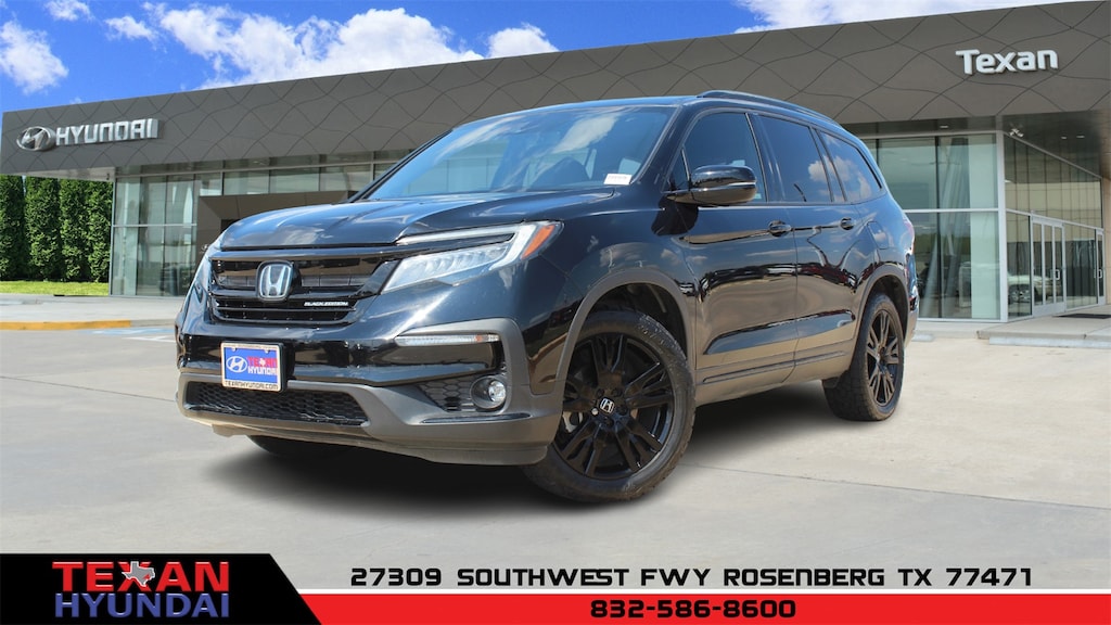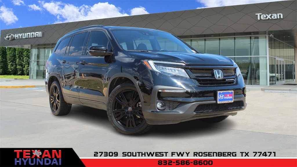 Black 2021 Honda Pilot Black Edition AWD 9-Speed Automatic 3.5L V6 24V SOHC i-VTEC Clean CARFAX. AWD, 10 Speakers, 3rd row seats: split-bench, 4-Wheel Disc Brakes, 4.33 Axle Ratio, A/V remote: CabinControl, ABS brakes, Air Conditioning, Alloy wheels, AM/FM radio: SiriusXM, Apple CarPlay/Android Auto, Auto High-beam Headlights, Auto-dimming door mirrors, Auto-dimming Rear-View mirror, Automatic temperature control, Blind Spot Information (BSI) System warning, Brake assist, Bumpers: body-color, Compass, Delay-off headlights, Driver door bin, Driver vanity mirror, Dual front impact airbags, Dual front side impact airbags, Electronic Stability Control, Emergency communication system: HondaLink, Exterior Parking Camera Rear, Forward collision: Collision Mitigation Braking System (CMBS) + FCW mitigation, Four wheel independent suspension, Front anti-roll bar, Front Bucket Seats, Front Center Armrest, Front dual zone A/C, Front fog lights, Front reading lights, Fully automatic headlights, Garage door transmitter: HomeLink, Headphones, Heated & Ventilated Front Bucket Seats, Heated door mirrors, Heated front seats, Heated rear seats, Heated steering wheel, Honda Satellite-Linked Navigation System, Illuminated entry, Lane departure: Lane Keeping Assist System (LKAS) active, Low tire pressure warning, Memory seat, Navigation system: Honda Satellite-Linked Navigation System, Occupant sensing airbag, Outside temperature display, Overhead airbag, Overhead console, Panic alarm, Passenger door bin, Passenger vanity mirror, Perforated Leather Seat Trim, Power door mirrors, Power driver seat, Power Liftgate, Power moonroof, Power passenger seat, Power steering, Power windows, Radio data system, Radio: 590-Watt Premium Audio System, Rain sensing wipers, Rear air conditioning, Rear anti-roll bar, Rear audio controls, Rear reading lights, Rear window defroster, Rear window wiper, Reclining 3rd row seat, Remote keyless entry, Roof rack: rails only, Security system, Speed control, Speed-sensing steering, Speed-Sensitive Wipers, Split folding rear seat, Spoiler, Steering wheel mounted audio controls, Tachometer, Telescoping steering wheel, Tilt steering wheel, Traction control, Trip computer, Turn signal indicator mirrors, Variably intermittent wipers, Ventilated front seats, Wheels: 20" Exclusive Black-Painted Alloy.