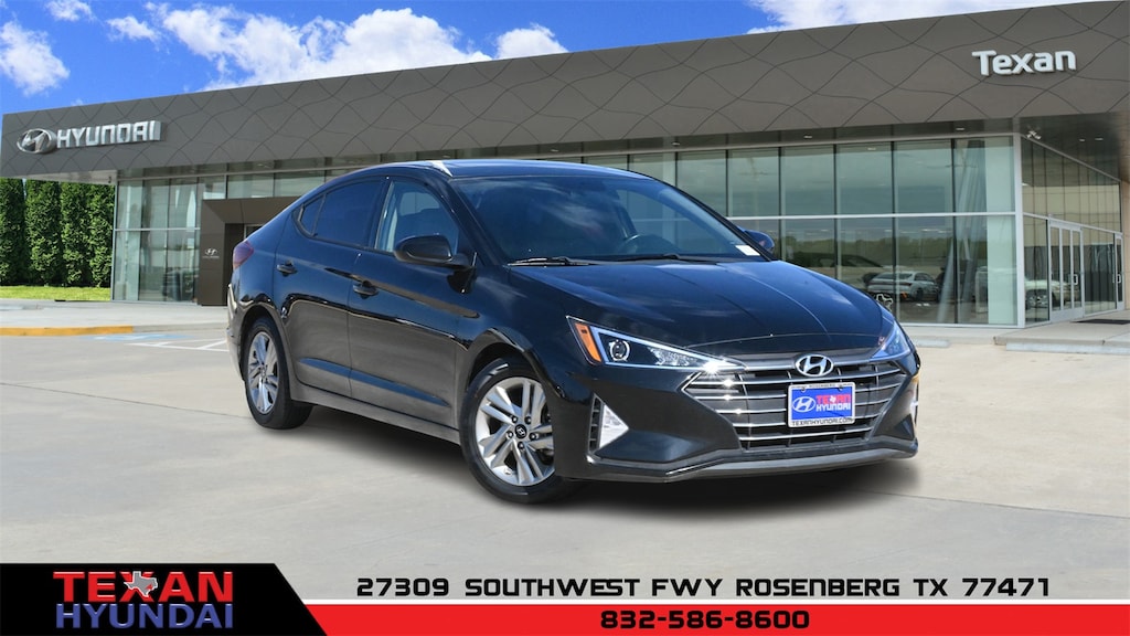 Black 2019 Hyundai Elantra Value Edition FWD 6-Speed Automatic with Shiftronic 2.0L 4-Cylinder DOHC 16V Clean CARFAX. CARFAX One-Owner. 16" x 6.5" Alloy Wheels, 4-Wheel Disc Brakes, 6 Speakers, ABS brakes, Air Conditioning, Alloy wheels, AM/FM radio: SiriusXM, Apple CarPlay & Android Auto, Automatic temperature control, Brake assist, Bumpers: body-color, Cargo Net, Carpeted Floor Mats, Delay-off headlights, Driver door bin, Driver vanity mirror, Dual front impact airbags, Dual front side impact airbags, Electronic Stability Control, Emergency communication system: Blue Link, Exterior Parking Camera Rear, First Aid Kit, Front anti-roll bar, Front Bucket Seats, Front Center Armrest, Front dual zone A/C, Front reading lights, Front wheel independent suspension, Fully automatic headlights, Heated door mirrors, Heated Front Bucket Seats, Heated front seats, Illuminated entry, Knee airbag, Low tire pressure warning, Occupant sensing airbag, Option Group 01, Outside temperature display, Overhead airbag, Overhead console, Panic alarm, Passenger door bin, Passenger vanity mirror, Power door mirrors, Power moonroof, Power steering, Power windows, Premium Cloth Seat Trim, Radio: AM/FM/HD/SiriusXM/MP3 Display Audio, Rear Bumper Applique, Rear window defroster, Remote keyless entry, Reversible Cargo Tray, Security system, Speed control, Speed-sensing steering, Split folding rear seat, Steering wheel mounted audio controls, Tachometer, Telescoping steering wheel, Tilt steering wheel, Traction control, Trip computer, Variably intermittent wipers.