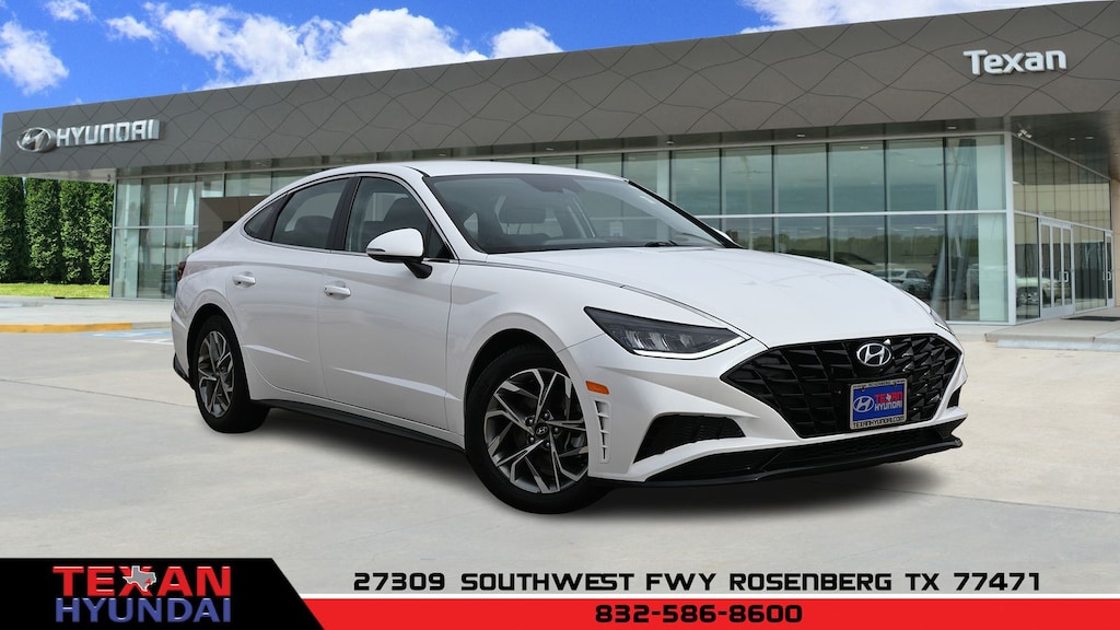 White 2022 Hyundai Sonata SEL FWD 8-Speed Automatic with SHIFTRONIC 2.5L I4 Black w/Premium Cloth Seating Surfaces, 17" x 7.0J Aluminum Alloy Wheels, 4-Wheel Disc Brakes, 6 Speakers, ABS brakes, Air Conditioning, Alloy wheels, AM/FM radio: SiriusXM, Apple CarPlay & Android Auto, Auto High-beam Headlights, Automatic temperature control, Brake assist, Bumpers: body-color, Carpeted Floor Mats, Delay-off headlights, Driver door bin, Driver vanity mirror, Dual front impact airbags, Dual front side impact airbags, Electronic Stability Control, Emergency communication system: Blue Link Connected Car Service (3-year complimentary subscription), Exterior Parking Camera Rear, First Aid Kit, Four wheel independent suspension, Front anti-roll bar, Front Bucket Seats, Front Center Armrest, Front dual zone A/C, Front reading lights, Fully automatic headlights, Heated door mirrors, Heated Front Bucket Seats, Heated front seats, Illuminated entry, Knee airbag, Low tire pressure warning, Mud Guards, Occupant sensing airbag, Option Group 01, Outside temperature display, Overhead airbag, Overhead console, Panic alarm, Passenger door bin, Passenger vanity mirror, Power door mirrors, Power driver seat, Power steering, Power windows, Premium Cloth Seating Surfaces, Radio data system, Radio: AM/FM/MP3/HD/SiriusXM Display Audio, Rear anti-roll bar, Rear seat center armrest, Rear side impact airbag, Rear window defroster, Remote keyless entry, Reversible Cargo Tray, Security system, Speed control, Speed-sensing steering, Speed-Sensitive Wipers, Split folding rear seat, Steering wheel mounted audio controls, Tachometer, Telescoping steering wheel, Tilt steering wheel, Traction control, Trip computer, Turn signal indicator mirrors, Variably intermittent wipers.