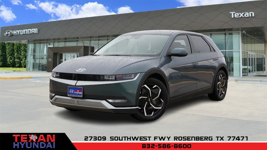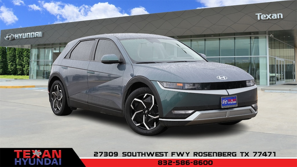 Certified. Teal 2023 Hyundai IONIQ 5 SEL AWD 1-Speed Automatic Electric Motor Clean CARFAX. 4-Wheel Disc Brakes, 4.706 Axle Ratio, 6 Speakers, ABS brakes, Air Conditioning, Alloy wheels, AM/FM radio: SiriusXM, Apple CarPlay & Android Auto, Auto High-beam Headlights, Auto-dimming Rear-View mirror, Automatic temperature control, Bodyside moldings, Brake assist, Bumpers: body-color, Cargo Net, Cargo Package, Carpeted Floor Mats, Delay-off headlights, Driver door bin, Driver vanity mirror, Dual front impact airbags, Dual front side impact airbags, Electronic Stability Control, Emergency communication system: Blue Link Connected Car Service (3-year complimentary subscription), First Aid Kit, Four wheel independent suspension, Front anti-roll bar, Front Bucket Seats, Front Center Armrest w/Storage, Front dual zone A/C, Front reading lights, Fully automatic headlights, Garage door transmitter: HomeLink, H-Tex Leatherette Seating Surfaces, harman/kardon® Speakers, Heated door mirrors, Heated Front Bucket Seats, Heated front seats, Heated steering wheel, Illuminated entry, Leather steering wheel, Low tire pressure warning, Mudguards, Navigation System, Occupant sensing airbag, Option Group 01, Outside temperature display, Overhead airbag, Overhead console, Panic alarm, Passenger door bin, Passenger vanity mirror, Power door mirrors, Power driver seat, Power Liftgate, Power steering, Power windows, Radio: AM/FM/SiriusXM/HD Display Audio System, Rear anti-roll bar, Rear reading lights, Rear seat center armrest, Rear window defroster, Remote keyless entry, Security system, Speed control, Speed-sensing steering, Split folding rear seat, Spoiler, Steering wheel mounted audio controls, Telescoping steering wheel, Tilt steering wheel, Traction control, Trip computer, Turn signal indicator mirrors, Up Seatback Cargo Mat, Variably intermittent wipers, Wheel Locks, Wheels: 19" x 7.5J Aero Alloy.