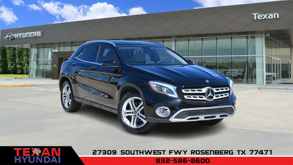 Black 2019 Mercedes-Benz GLA GLA 250 FWD 7-Speed Automatic 2.0L I4 DI Turbocharged 18" 5-Spoke Aluminum Wheels, 4-Way Lumbar Support, 4-Wheel Disc Brakes, 8 Speakers, 8" Color Display Upgrade, ABS brakes, Air Conditioning, Alloy wheels, AM/FM radio, Auto-Dimming Rearview & Driver-Side Mirrors, Automatic temperature control, Axle Ratio: 4.60, Blind Spot Assist, Brake assist, Bumpers: body-color, CD player, Child-Seat-Sensing Airbag, Convenience Package, Delay-off headlights, Driver door bin, Driver vanity mirror, Dual front impact airbags, Dual front side impact airbags, Electronic Stability Control, Emergency communication system: mbrace, Exterior Parking Camera Rear, Four wheel independent suspension, Front anti-roll bar, Front Bucket Seats, Front Center Armrest, Front dual zone A/C, Front fog lights, Front Power Seats, Front reading lights, Fully automatic headlights, Garage Door Opener, HANDS-FREE ACCESS, Heated door mirrors, Heated Front Seats, Illuminated entry, KEYLESS GO®, Knee airbag, Low tire pressure warning, MB-Tex Upholstery, Memory seat, Navigation System, Occupant sensing airbag, Outside temperature display, Overhead airbag, Overhead console, Panic alarm, Passenger door bin, Passenger vanity mirror, Power door mirrors, Power driver seat, Power Driver Seat w/Memory, Power Liftgate, Power passenger seat, Power Passenger Seat w/Memory, Power steering, Power windows, Premium Package, Radio data system, Radio: Audio System w/Garmin Navigation Pre-Wiring, Rain sensing wipers, Rear anti-roll bar, Rear fog lights, Rear reading lights, Rear seat center armrest, Rear window defroster, Rear window wiper, Remote keyless entry, Roof rack: rails only, Security system, Single CD Player, SIRIUSXM Satellite Radio, Speed control, Speed-sensing steering, Split folding rear seat, Spoiler, Steering wheel mounted audio controls, Tachometer, Telescoping steering wheel, Tilt steering wheel, Traction control, Trip computer, Turn signal indicator mirrors, Variably intermittent wipers, Weather band radio.